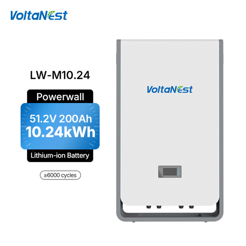VoltaNest 51,2 V 200Ah 10,24 kWh 6000 Zyklen Wand montage 10 Jahre Lifepo4 Lithium-Ionen-Batterie Hybrid-Solaranlage für zu Hause